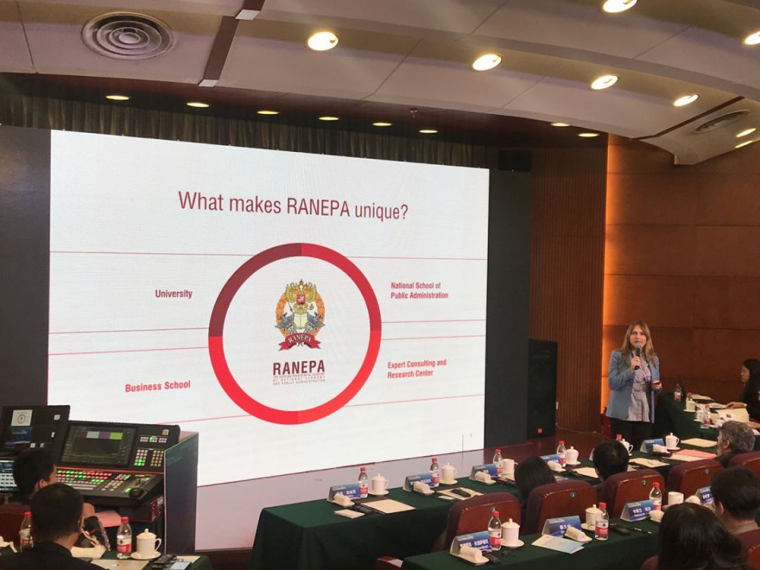 (俄罗斯总理研究院项目创新主任Elena Dugin在机构推介环节)